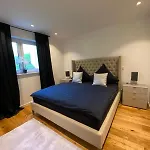 Apartamento Panorama-Paradies Im Rheinthal cuenta con un balcón y un vestidor, y comodidades como climatizador. El apartamento destaca por ofrecer comodidades como secador de pelo y toallas de baño en el baño. También dispone de bidé, bañera y ducha.